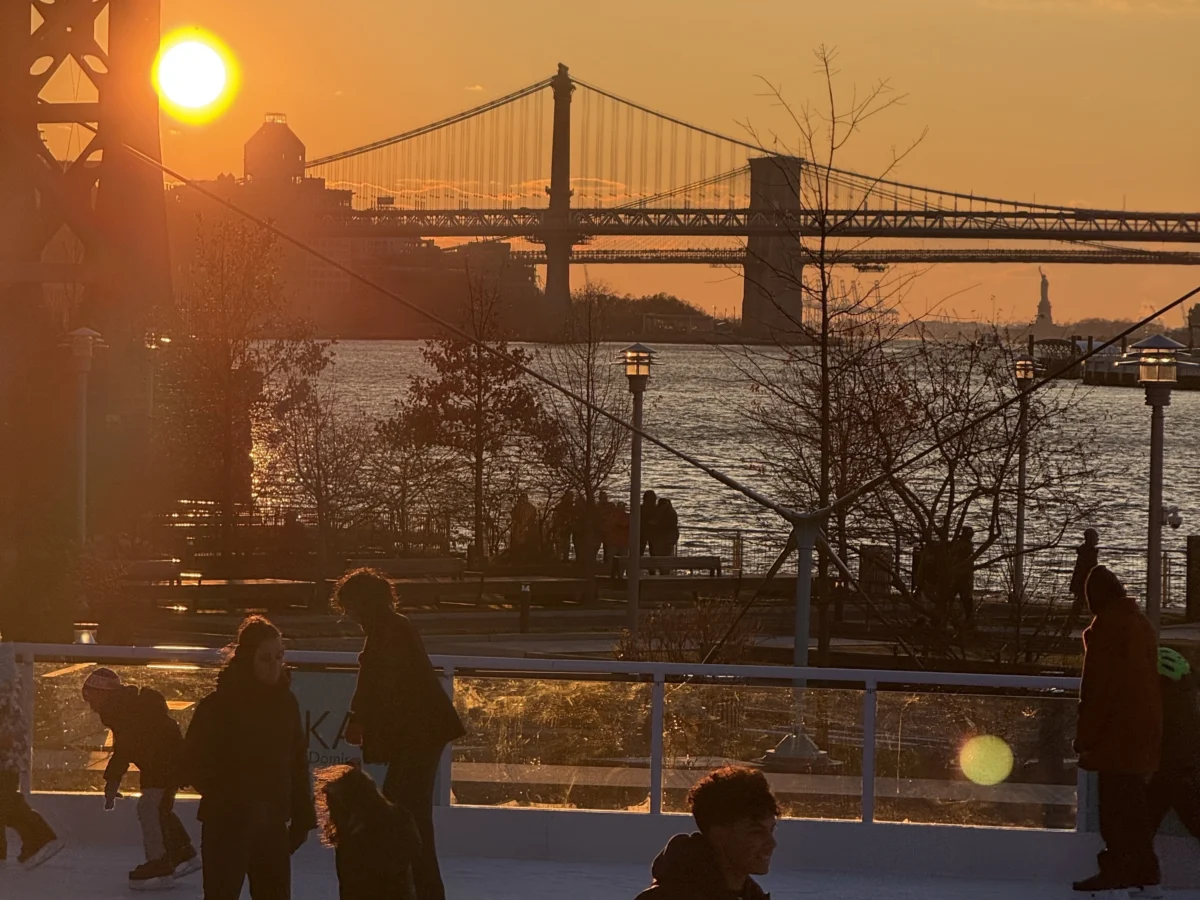 ¿Quieres patinar sobre hielo con vistas espectaculares del skyline de Manhattan? La pista de hielo de Domino Park es una de las experiencias invernales más hermosas de Brooklyn. Ubicada en el waterfront de Williamsburg, esta pista al aire libre ofrece patinaje con vistas al East River, el Williamsburg Bridge y los rascacielos de la ciudad. Inauguró en 2024.